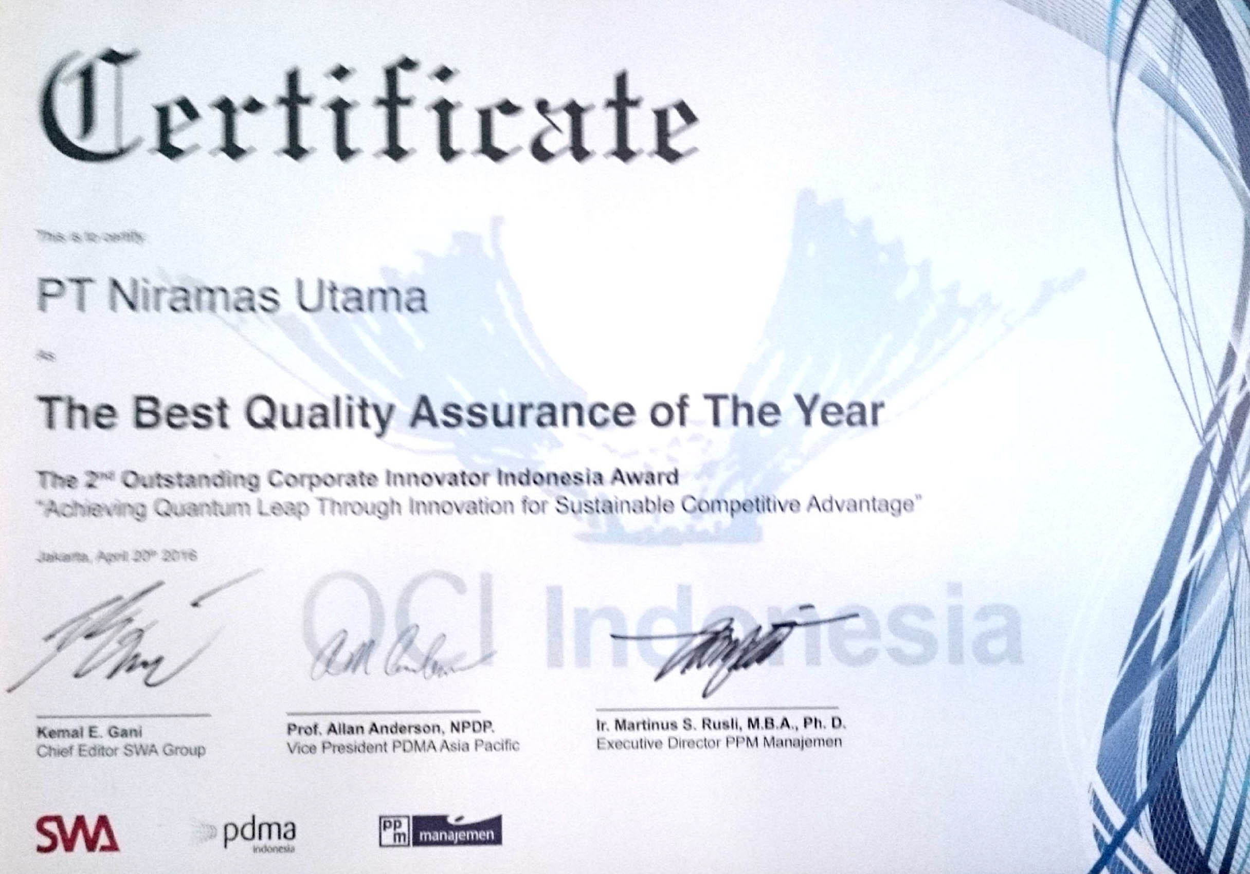 PT. Niramas Utama sangat bangga dengan komitmen kami untuk memproduksi produk yang berkualitas tinggi. Dedikasi kami ini telah menghasilkan banyak penghargaan dan pengakuan selama bertahun-tahun. Sebagaian penghargaan ini merupakan bukti dari upaya kami yang tiada henti untuk mencapai kualitas, inovasi, dan kepuasan pelanggan.